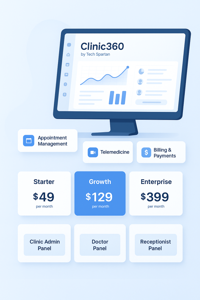 Build efficient clinics with centralized appointments, secure telemedicine, billing & detailed analytics. Designed for hospitals, multi-doctor clinics and diagnostic centers.